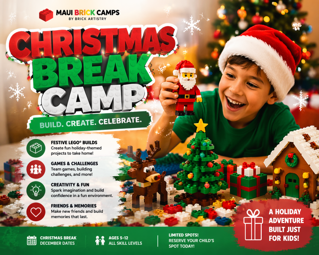 Maui Brick Camps holiday build camp gives kids a festive, hands-on experience filled with seasonal building projects, creativity, fun challenges, and memorable screen-free time during school breaks.